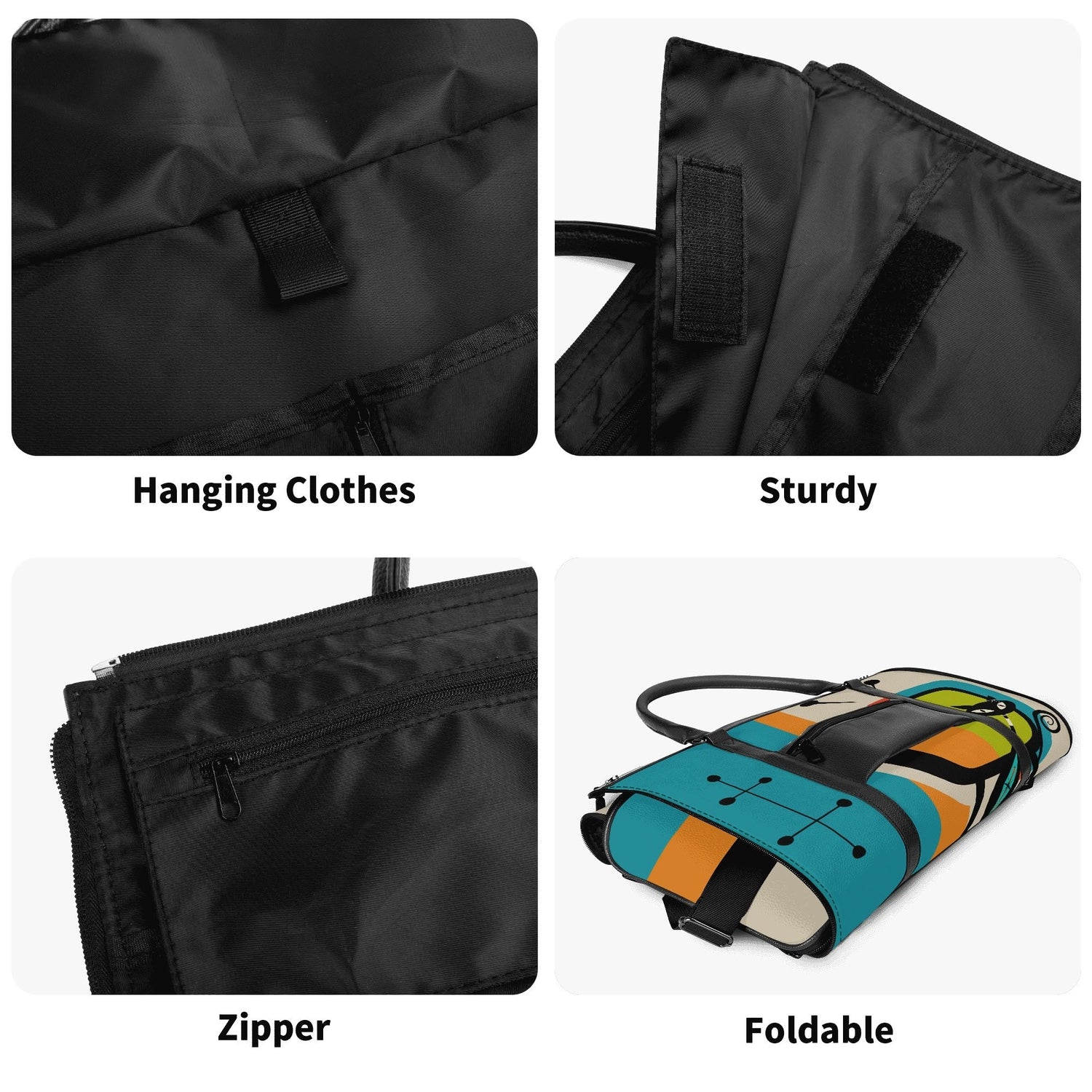 - Storage: Spacious main compartment with interior zipper pockets, hanger lanyard for suits, and side pockets for shoes