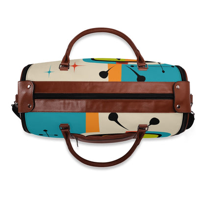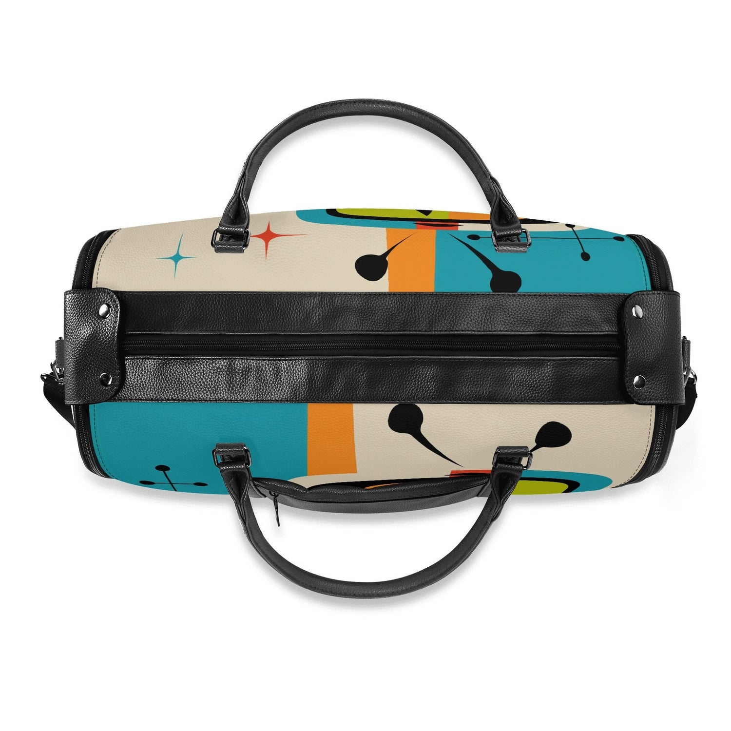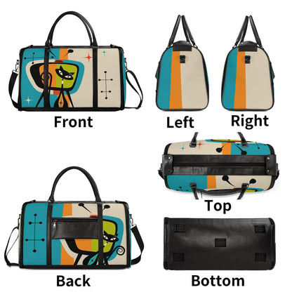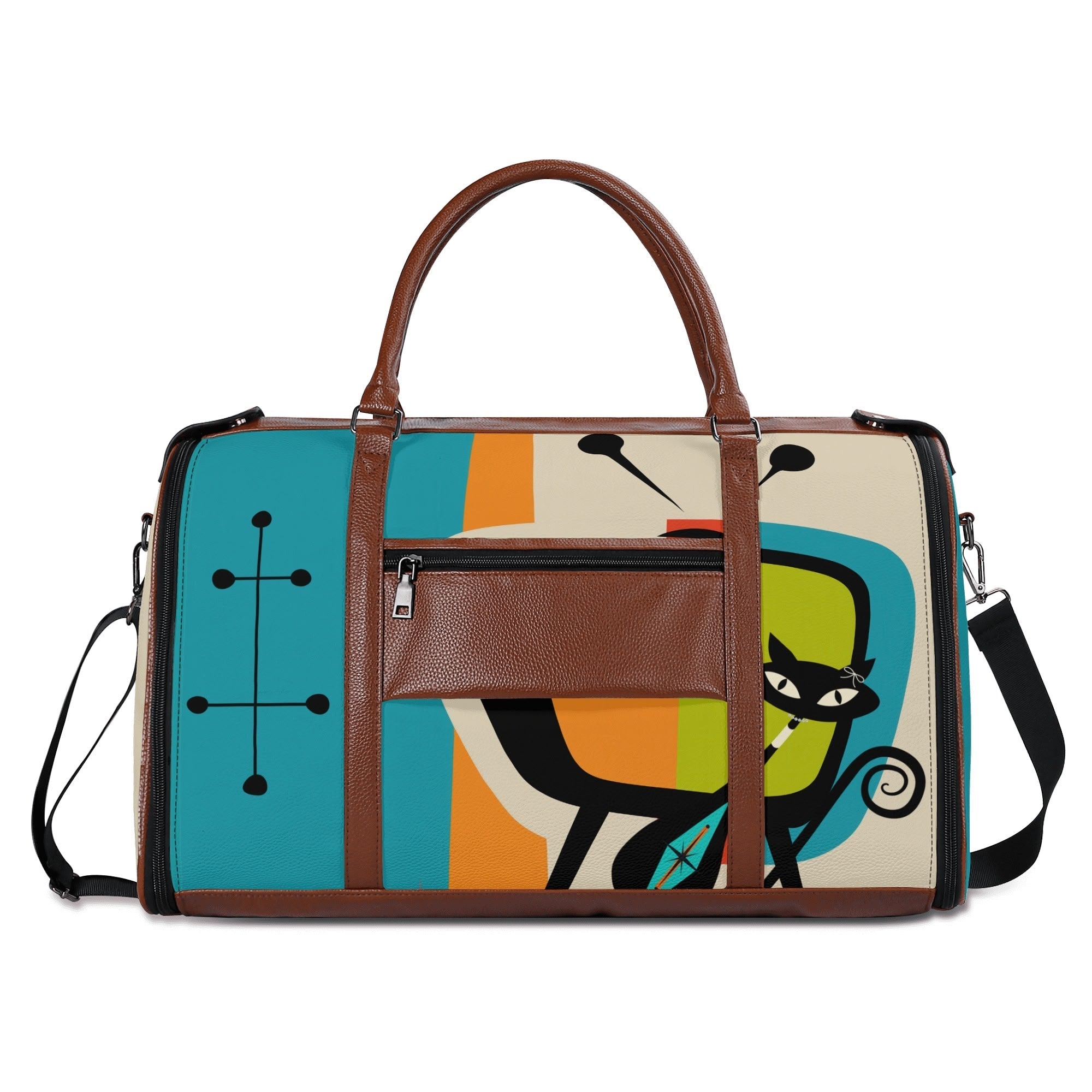 Step into a retro dream with this Atomic Cat duffel bag, featuring a vintage TV frame and atomic starbursts in bold mid-century colors. This Space Age-inspired weekender is perfect for stylish getaways, road trips, or everyday mod adventures. Functional, fashionable, and bursting with 50s charm.