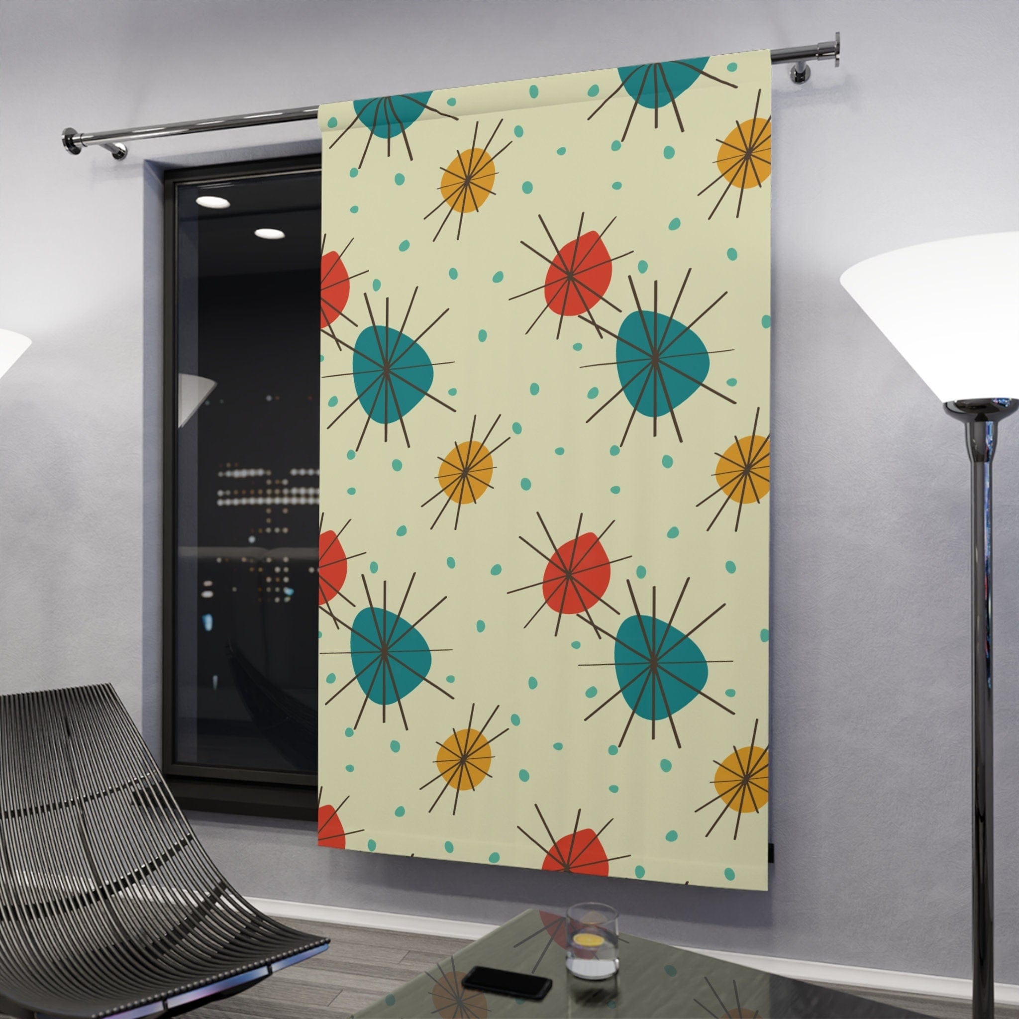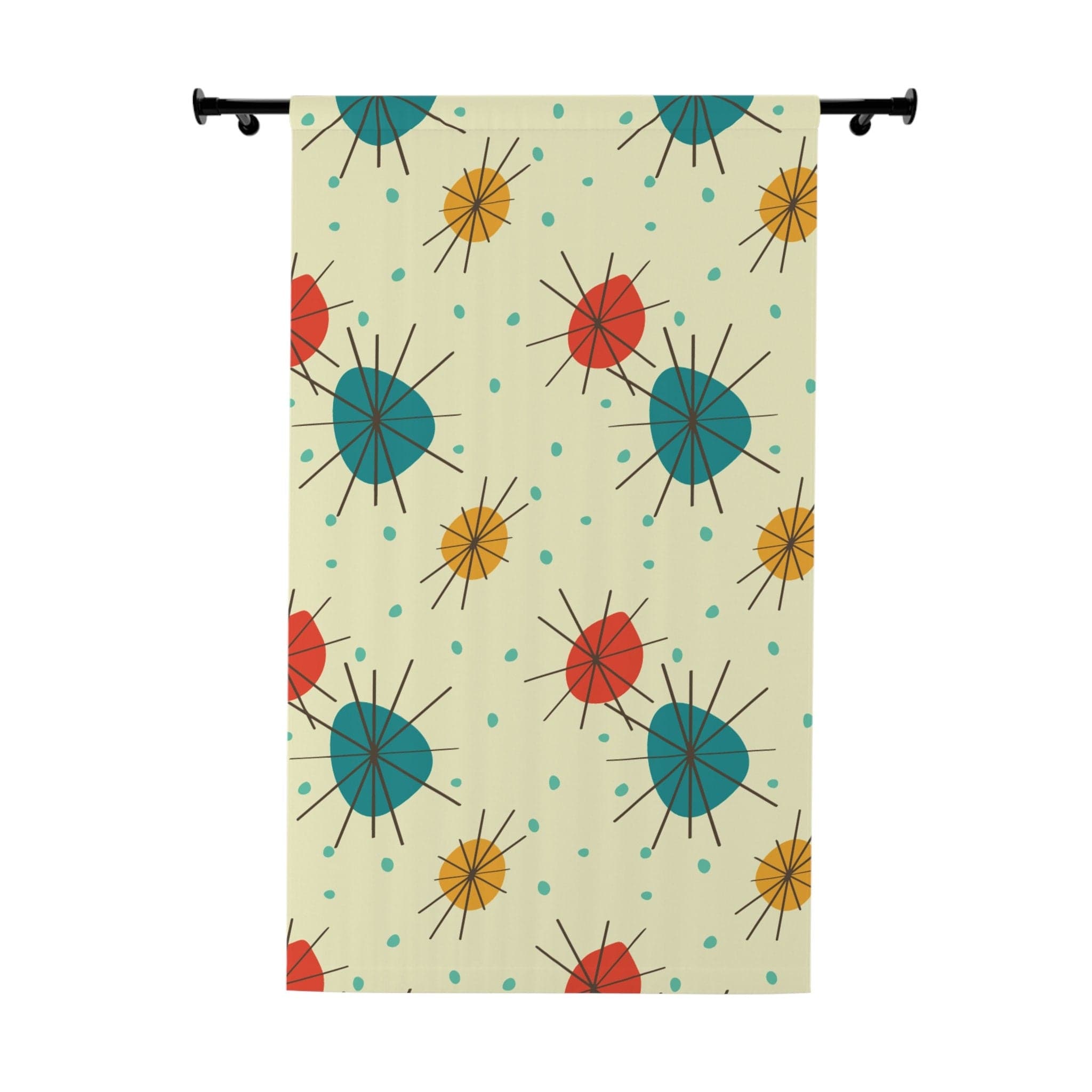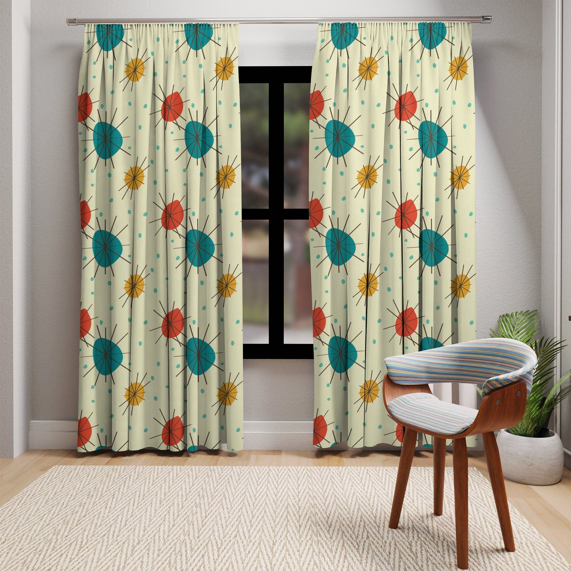 Mid Century Franciscan Starburst Curtains, Atomic Teal, Mustard, Orange - Retro Window Panels - KM13749723