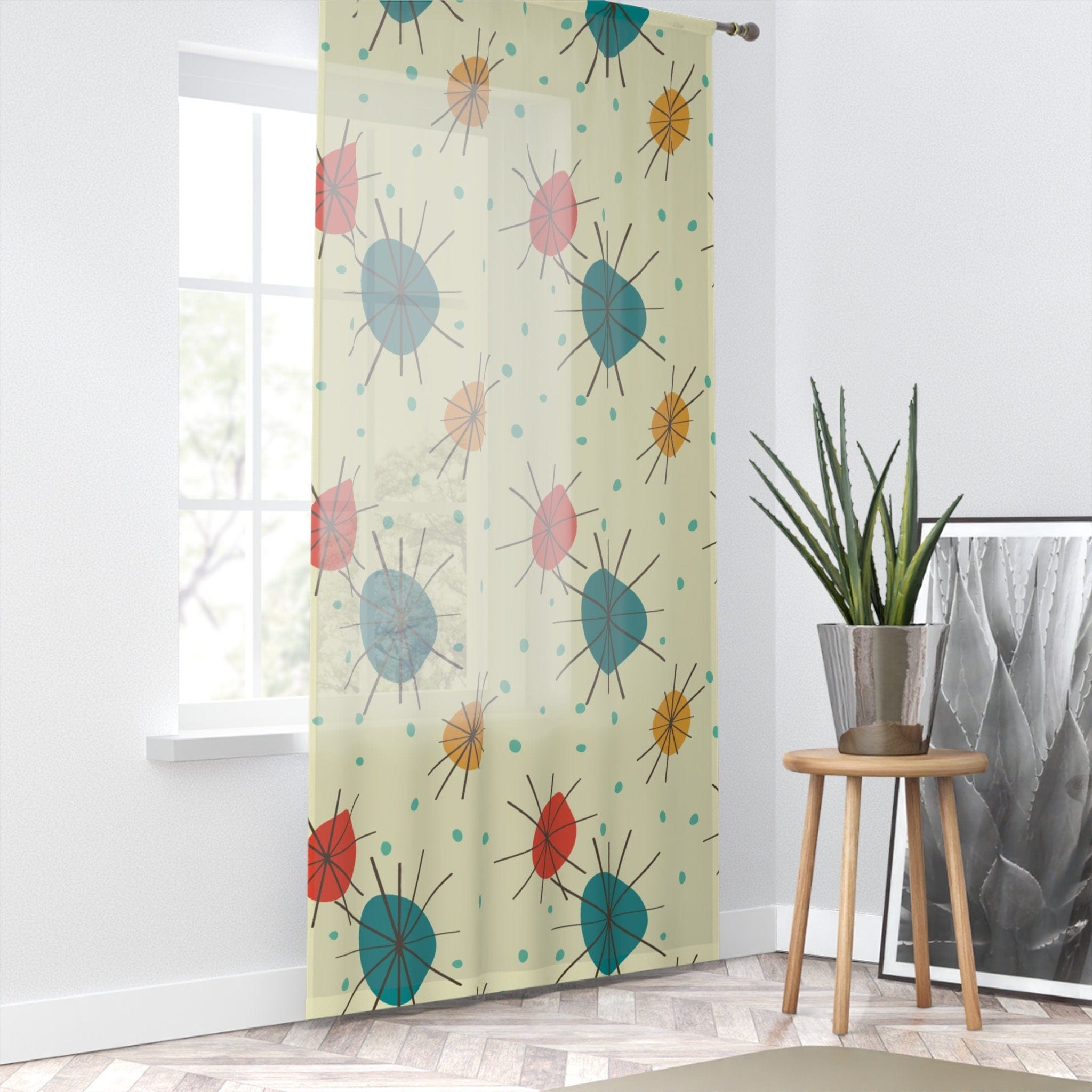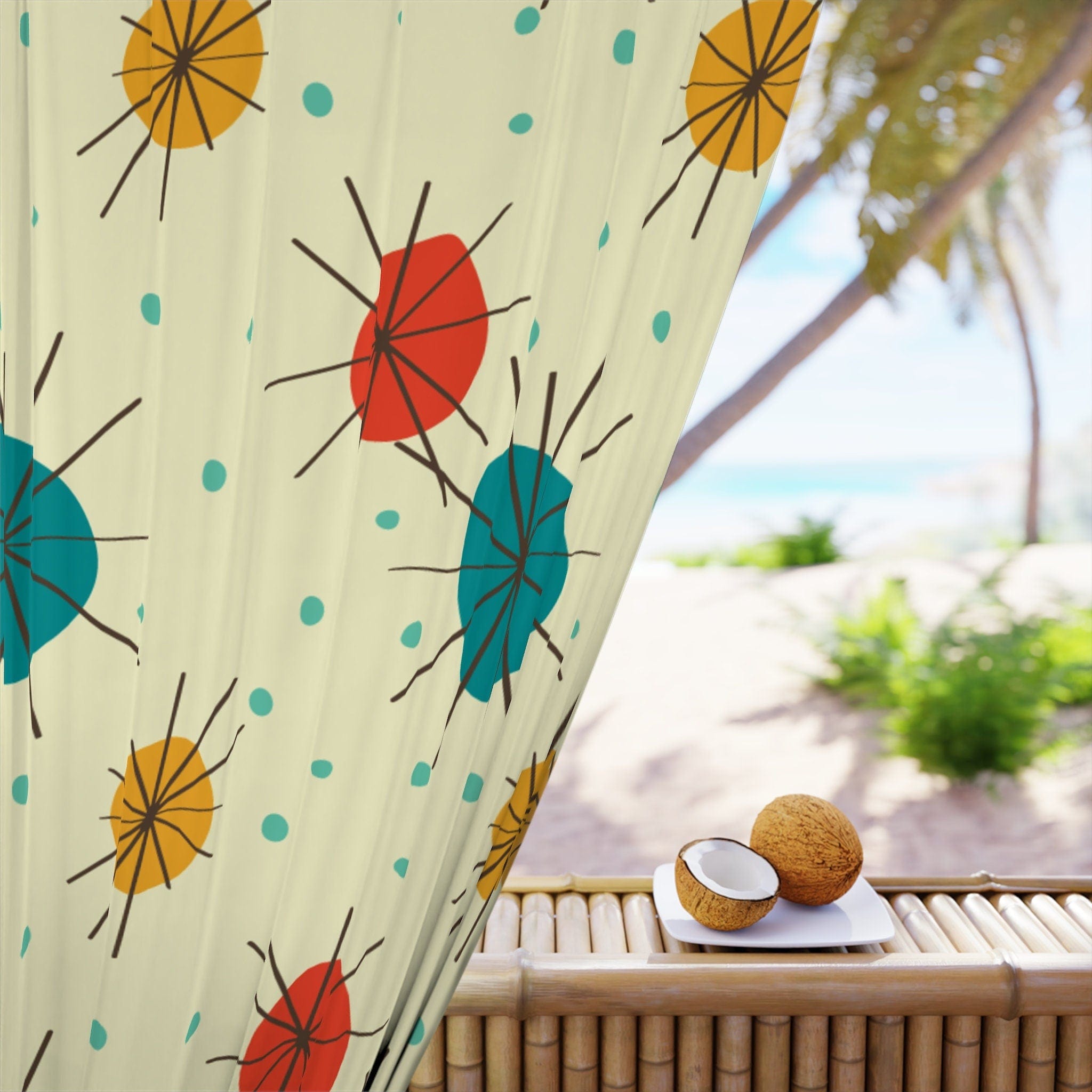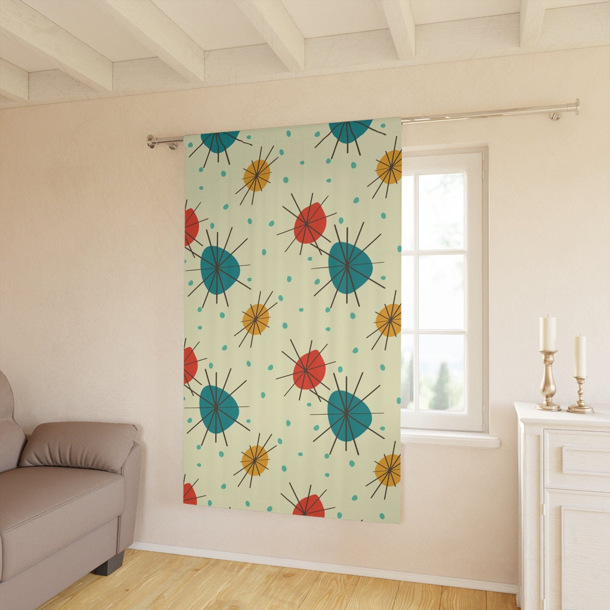 Mid Century Franciscan Starburst Curtains, Atomic Teal, Mustard, Orange - Retro Window Panels - KM13749723