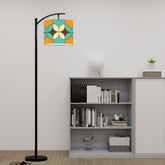 Add a pop of retro charm to your home with this mid-century modern arc floor lamp. Featuring bold geometric orb patterns in orange and teal, this lamp is a vibrant accent piece for your living room, bedroom, or office. Its sleek arc design and warm glow bring a nostalgic yet modern vibe to any space. Perfect for those who adore MCM aesthetics and colorful statement lighting.