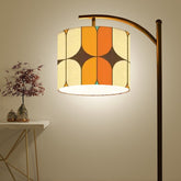 Say hello to the ultimate mid-century vibe with this arch floor lamp! Its bold geometric drum shade, featuring groovy retro hues of orange, beige, and brown, delivers serious atomic-era charm. The sleek black base and arched neck complete its chic, space-age look, making it a perfect fit for your living room, reading nook, or even your modern office. Functional lighting never looked this stylish—get ready to bask in the glow of timeless MCM magic!