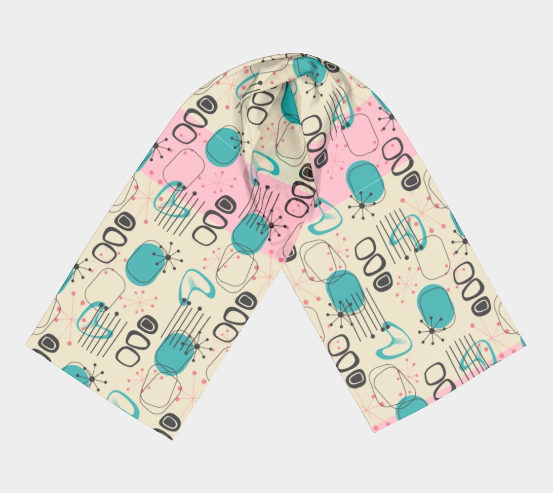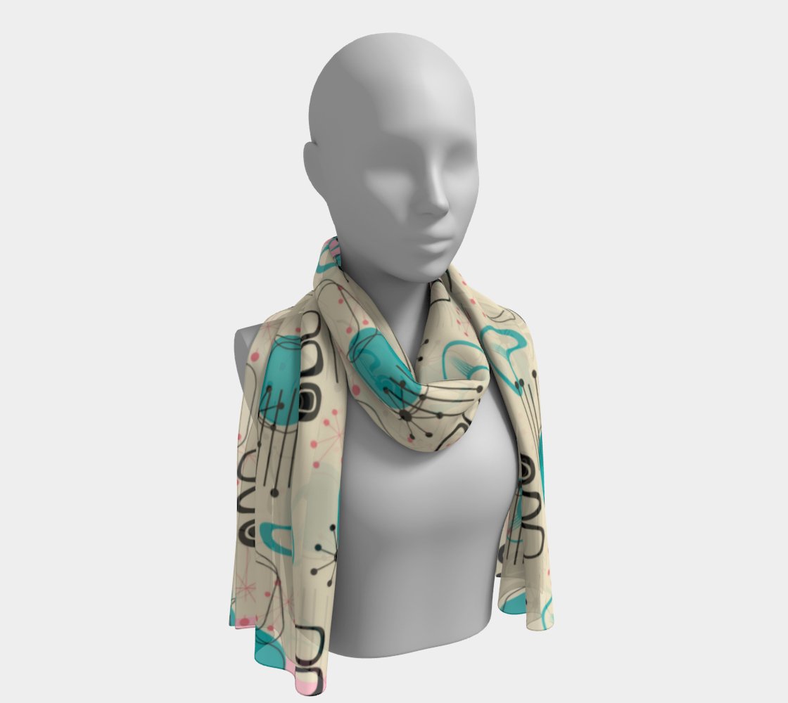 Mid Century Modern Retro Atomic Starburst Silk Habotai Long Scarf