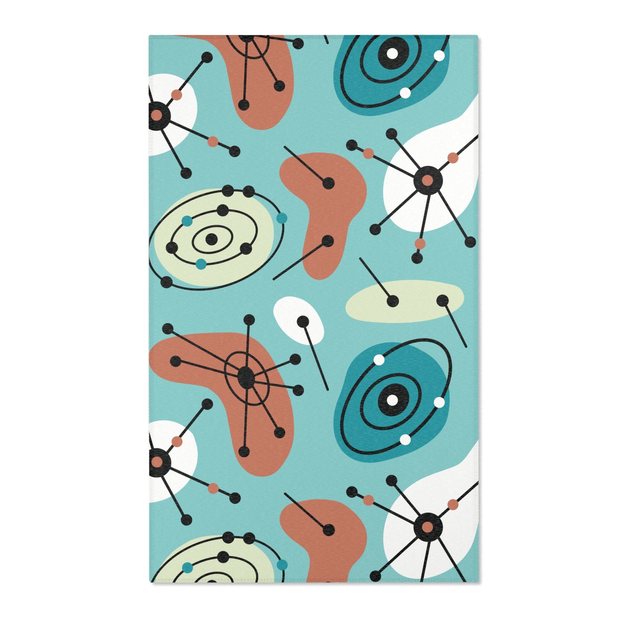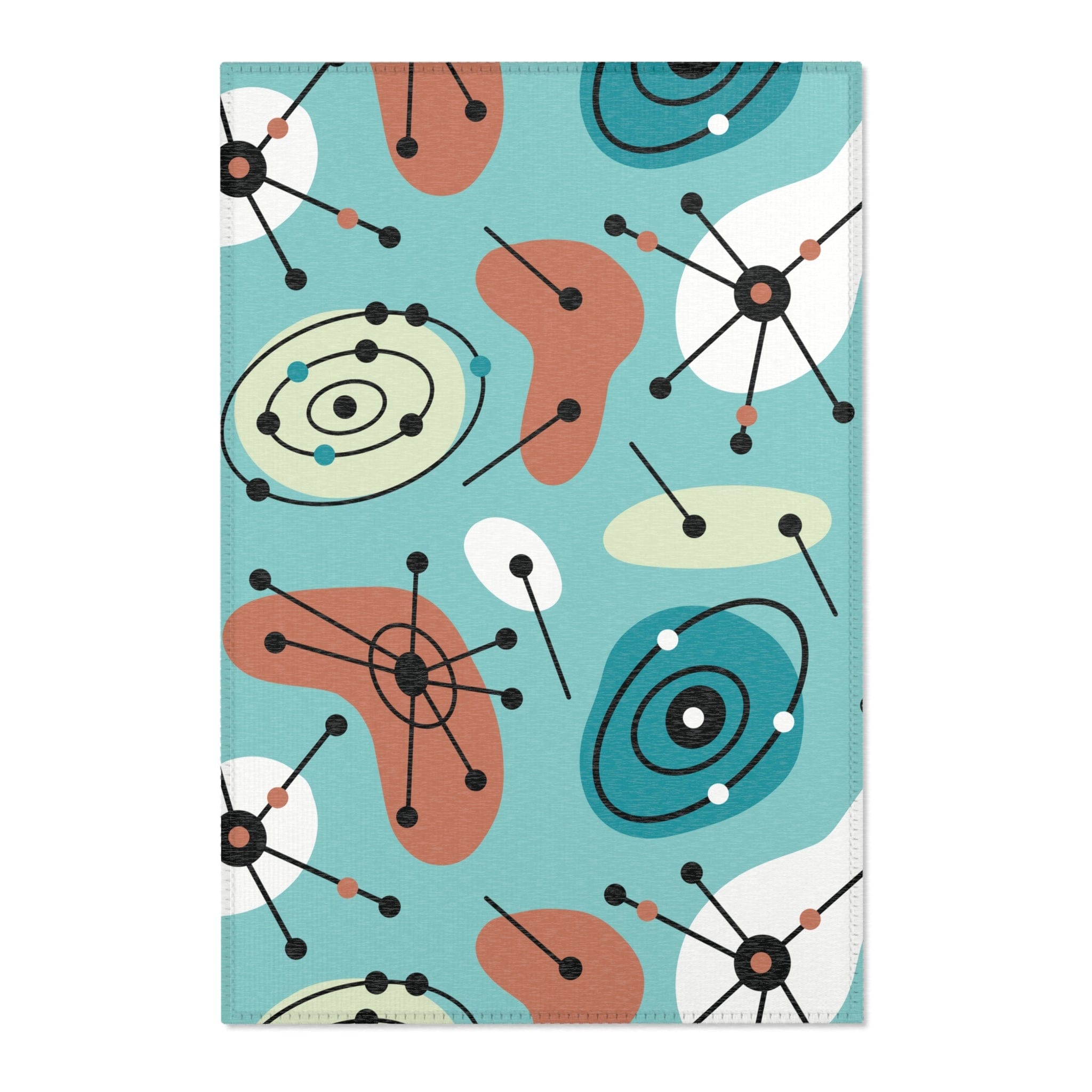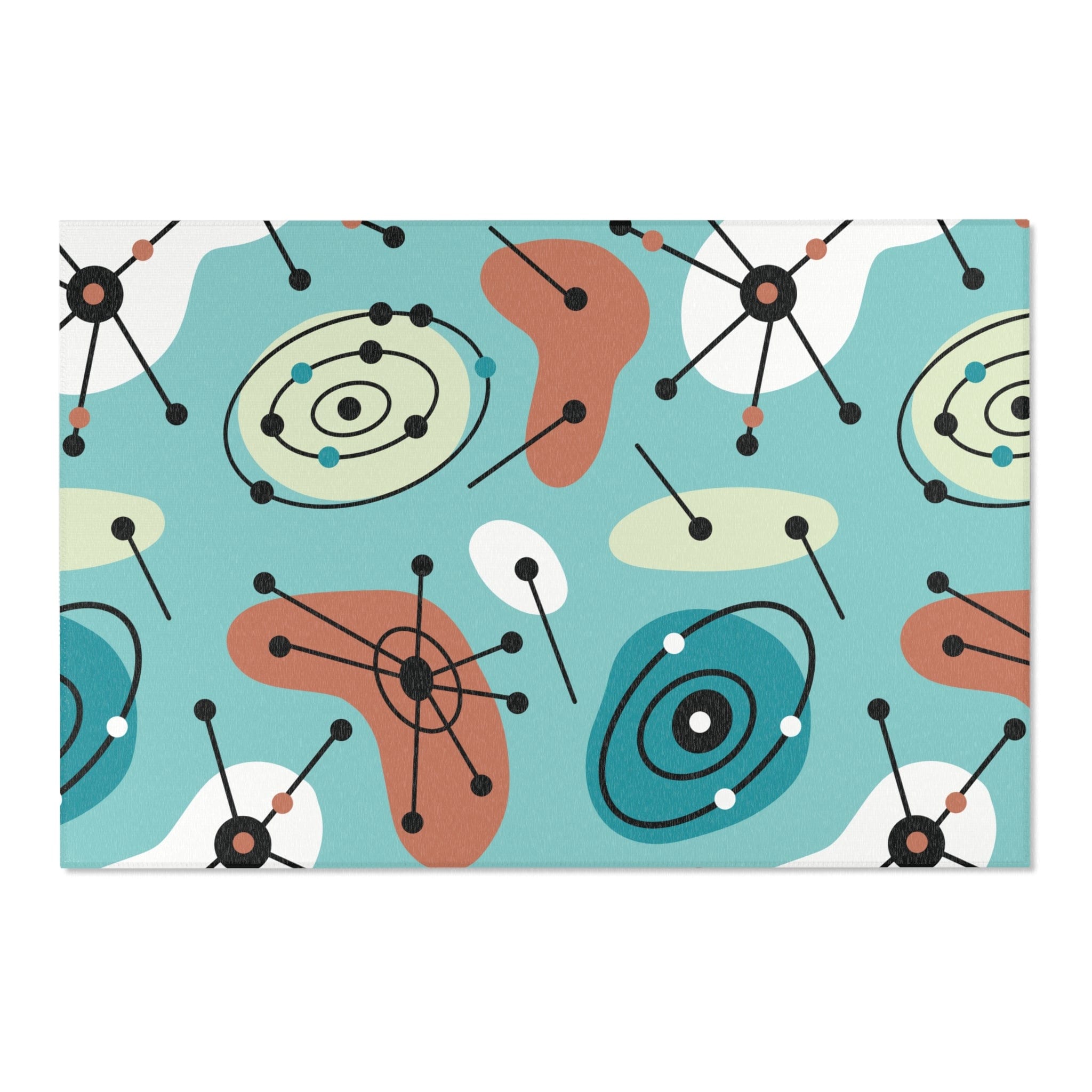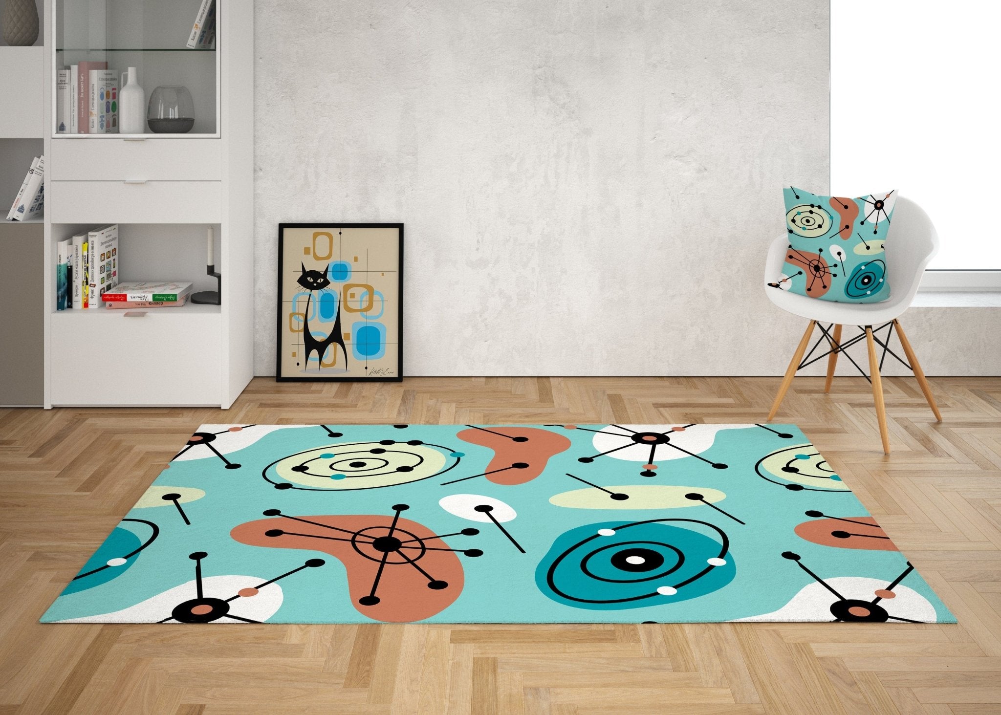Jazz up your floors with our Atomic Age Area Rug! It's a blast from the past, featuring Mid-Century Modern designs that'll give any room a lively and upbeat touch of the '50s and '60s charm.