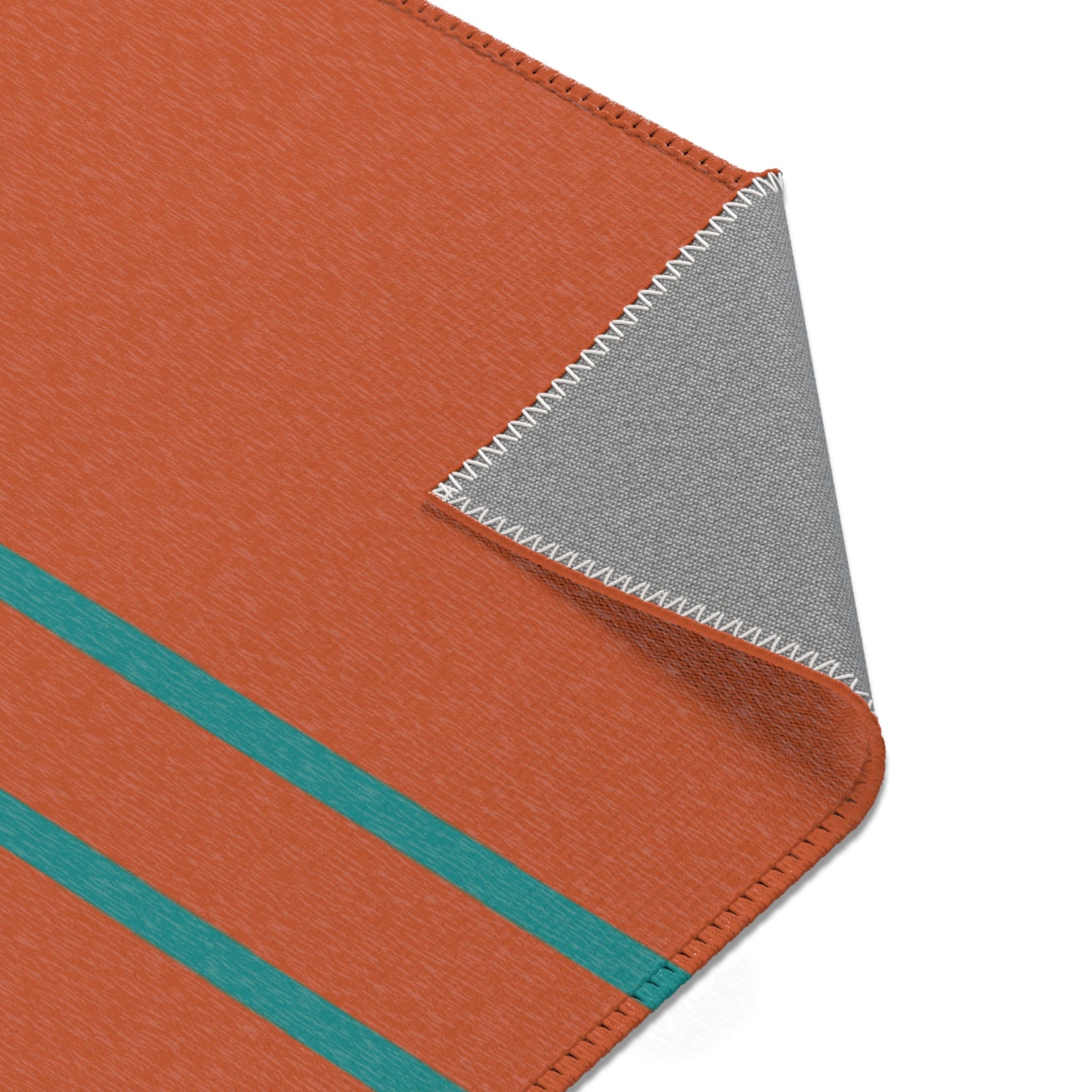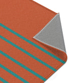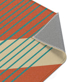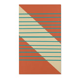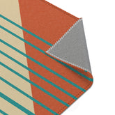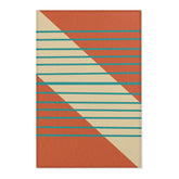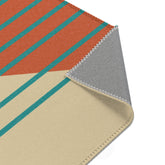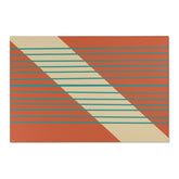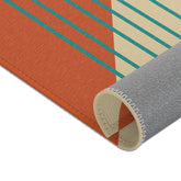 Embrace the minimalist charm of our Mid-Century Teal Stripe Area Rug. Harmonious stripes traverse the surface, intersected by a bold diagonal that injects a sense of direction and movement. Earthy tones meet a burst of teal, marrying retro flair with the clean lines of modern simplicity, perfect for grounding your space in style.