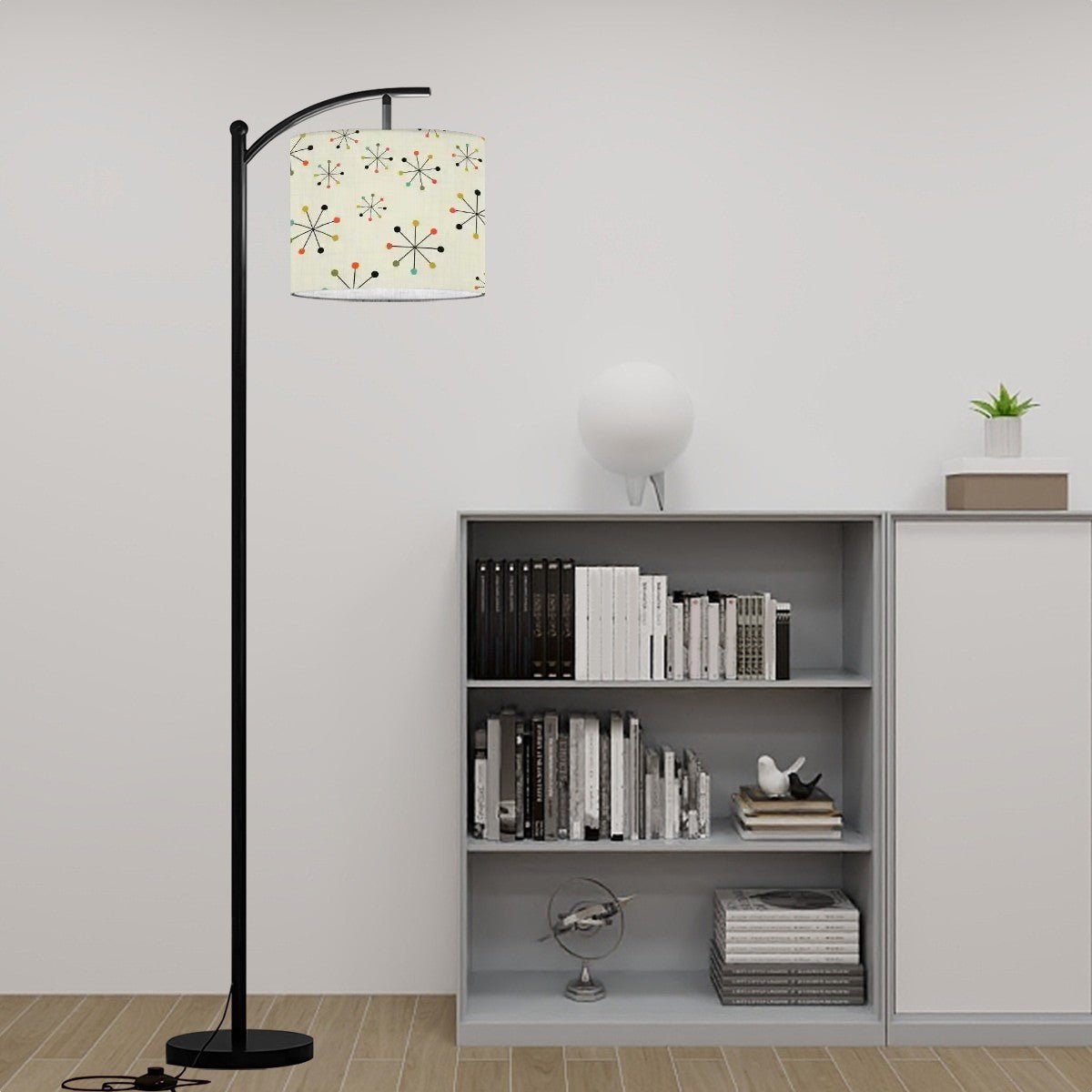 Mid Century Modern Starburst Arc Floor Lamp, 50s Retro Lighting, Atomic Age Accent Lamp
