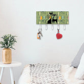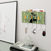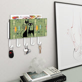 Add a touch of atomic-age charm to your space with this Atomic Cat mid-century modern key holder! Featuring a green background with retro starbursts, atomic shapes, and two sleek black Atomic Cats, this wall-mounted organizer is perfect for keeping your keys stylishly in place. Functional and fun, it's the perfect mod accent for your entryway or office.
