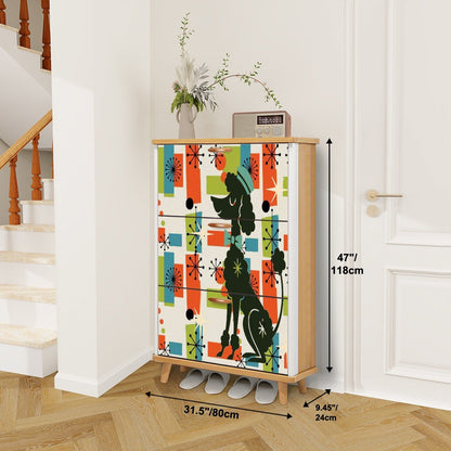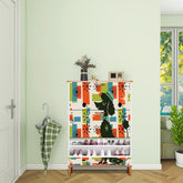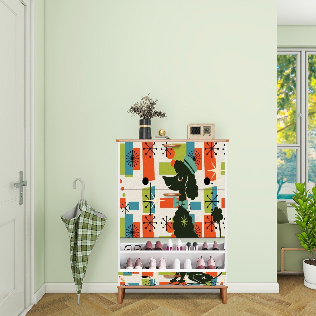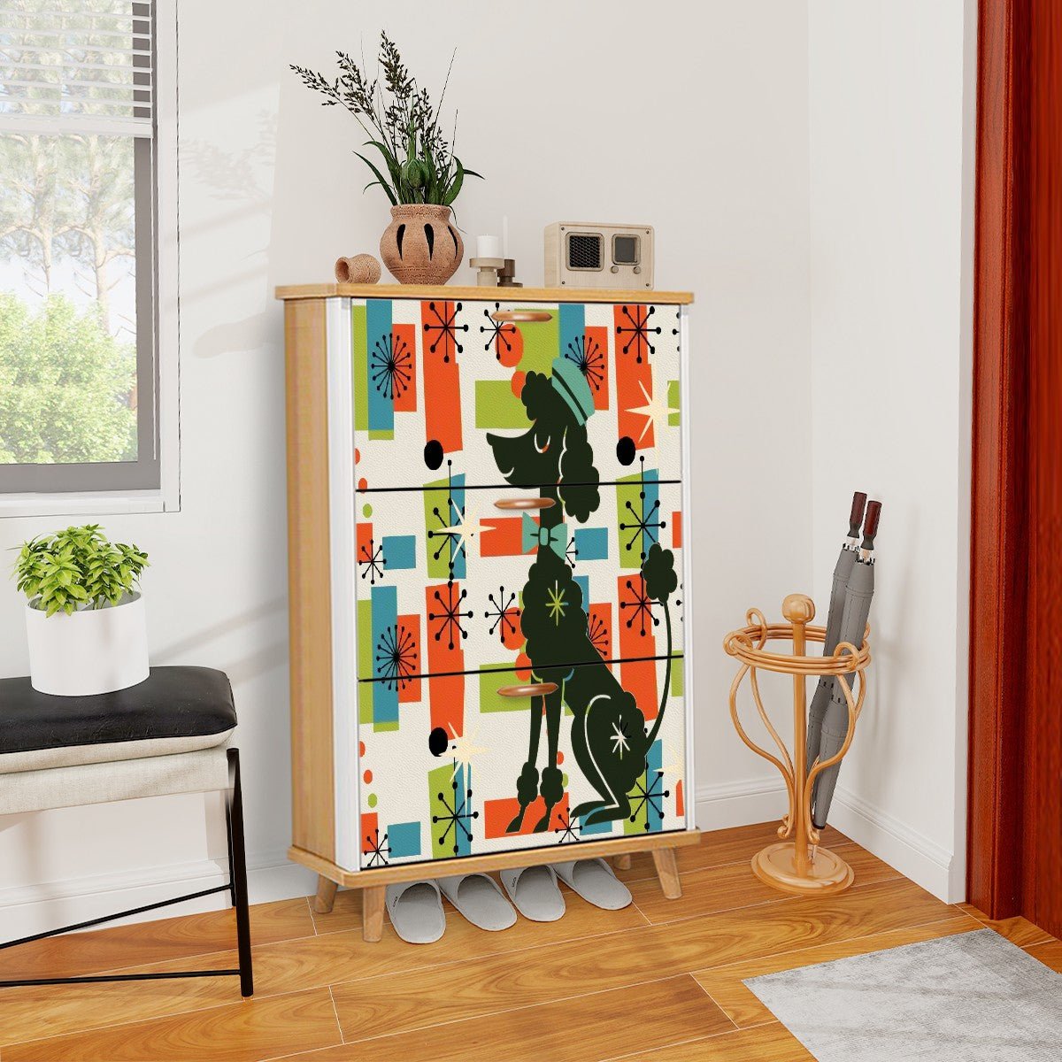 Kate McEnroe New York Mid Mod Poodle Shoe Cabinet, Orange Blue Green Starburst Storage Chest, 50s Retro Entry OrganizerShoe Storage5XkXX3jdL2