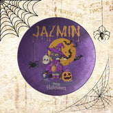 Halloween Decor has never been more fun with these Personalized Witch Cat Halloween Plate. Can be used as decorations or for serving halloween treat delights.