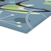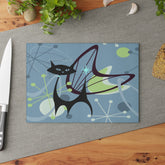 Add some retro charm to your kitchen with our Retro Atomic Black Cat Glass Cutting Board! Crafted from high-quality tempered glass, this kitschy blue and lime green boomerang design not only adds a pop of color, but also offers daily durability for all your chopping needs. Perfect for cat lovers and anyone looking for unique and quirky kitchen accessories. Meow!