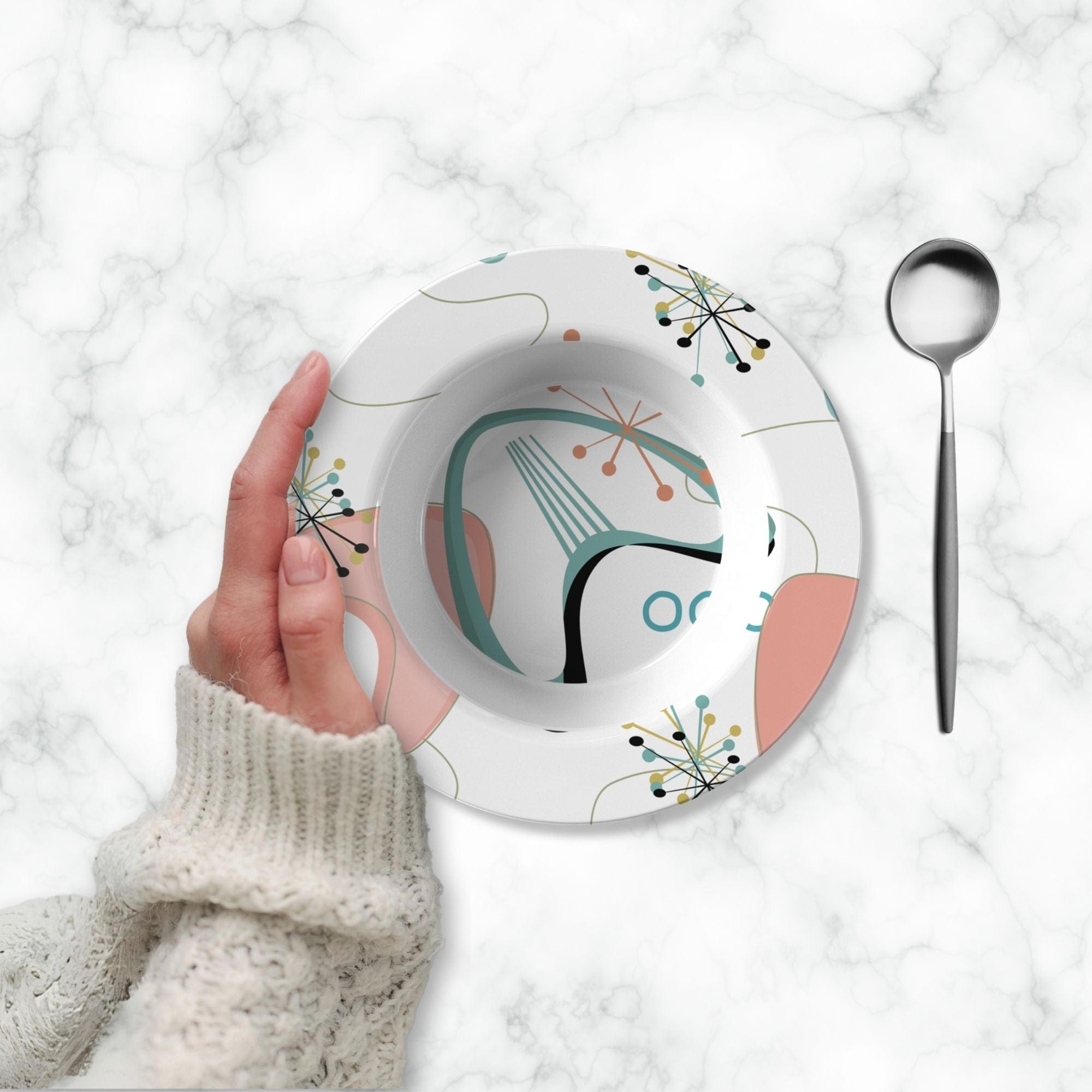 Add a swoop of the 50s to your meal with this Atomic Boomerang Bowl! With its retro boomerang design and soft pastel pops, it’s a mid-century treasure for any modern table.