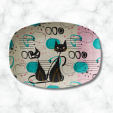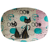 Retro Atomic Cat Mid Century Modern Platter, MCM Pink, Turquoise Black Geometric Starburst Dinnerware