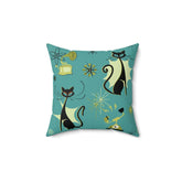 Retro Atomic Cat Mid Century Modern Teal, Green Throw Pillow