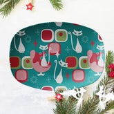 Retro Atomic Cat Serving Platter, Mid Century Modern Tray, Holiday Dinnerware