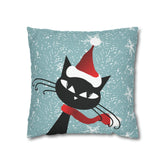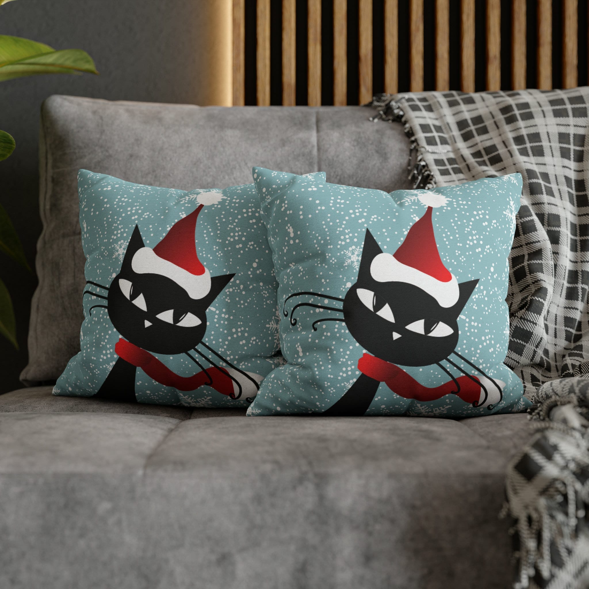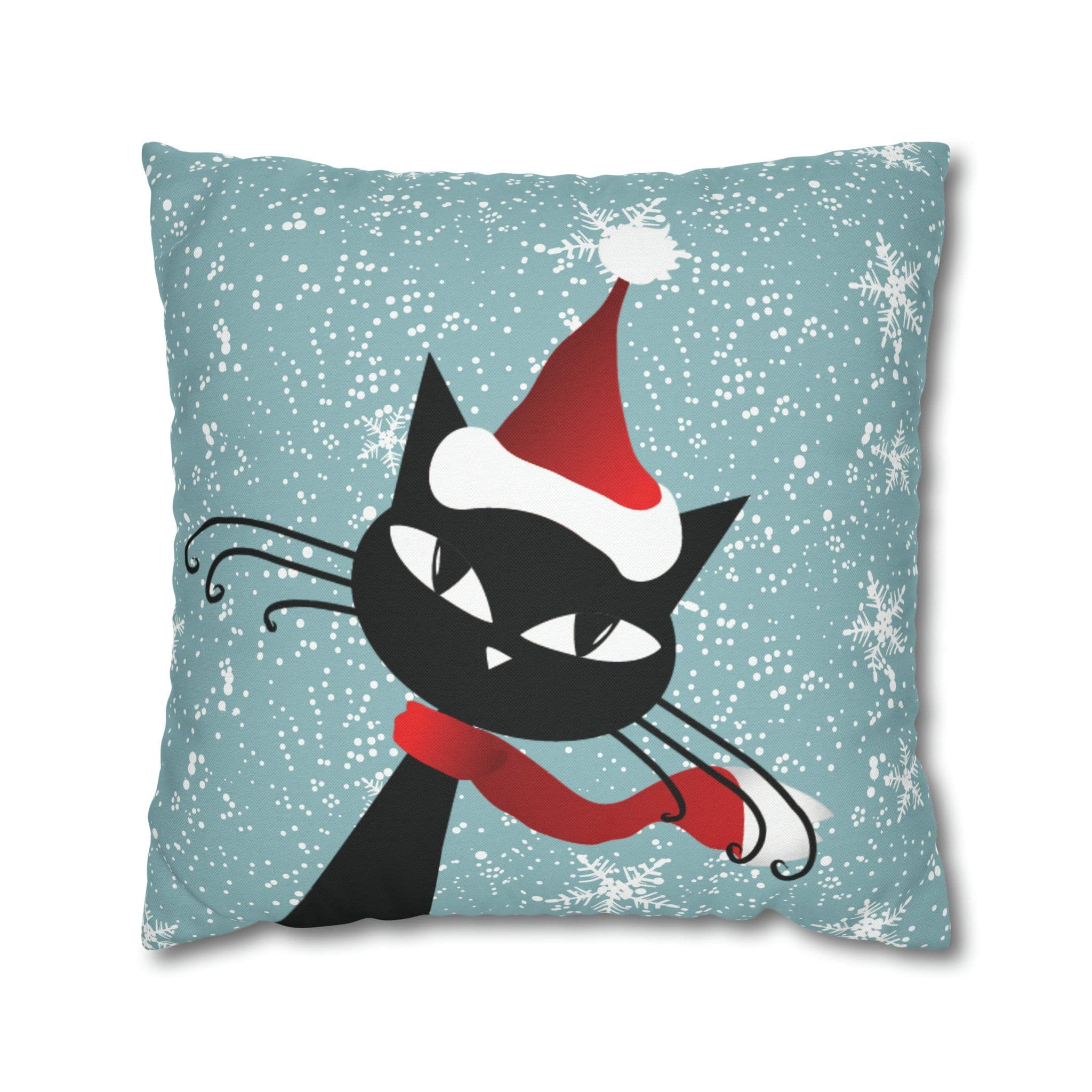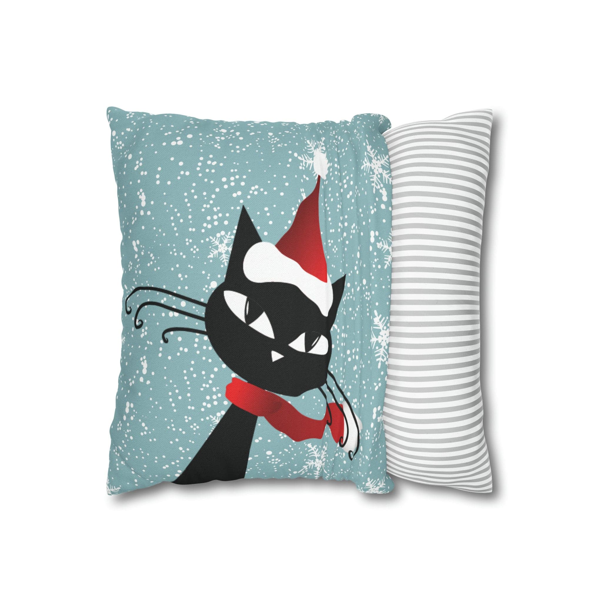 Make the holidays extra purrrfect with this Retro Atomic Cat Snowflake pillow cover! Show your holiday spirit in style with these festive Mid-Century Modern blue cushion covers, perfect for snuggling against your furry feline companion. Purr-haps one of the cutest pillow cases around!