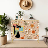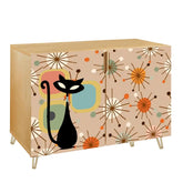 This Atomic Cat storage cabinet is bursting with mid-century modern charm! Featuring a playful 50s-inspired starburst design with bold geometric shapes, this sideboard brings vintage vibes to any room. Perfect for adding a pop of retro flair to your space while keeping things stylishly organized.