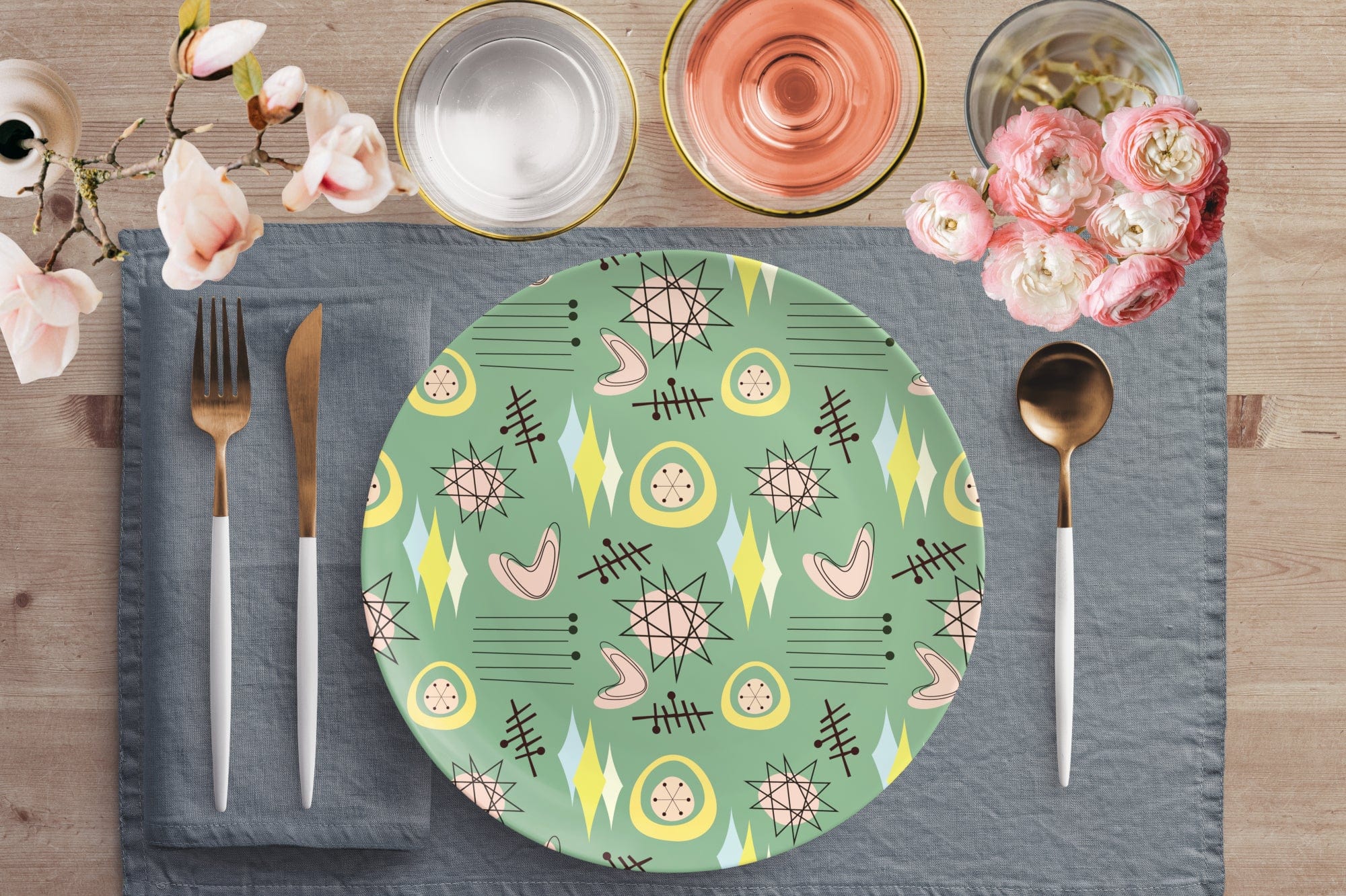 Retro Boomerang Dinner Plate, 50s Atomic Mid Century Modern Starburst Dinnerware