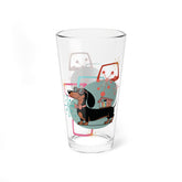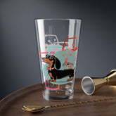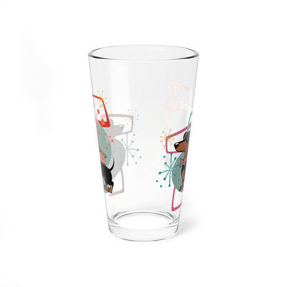 Retro Dachshund Mid Century Modern Pint Glass, MCM Starburst Dog Drinkware, Kitsch Barware Glass