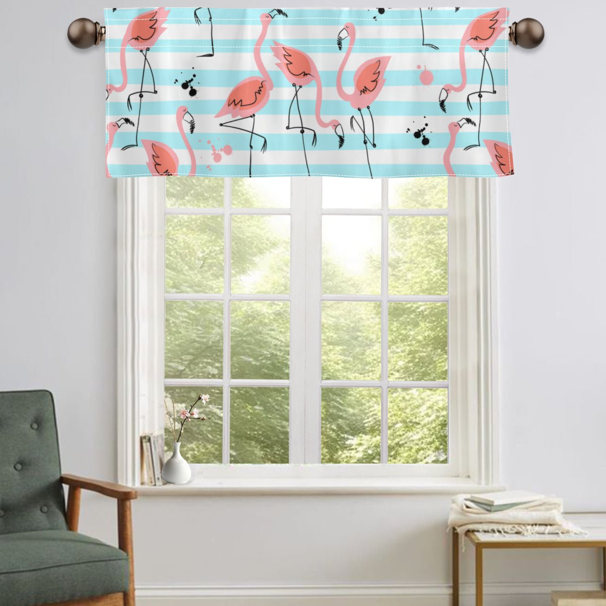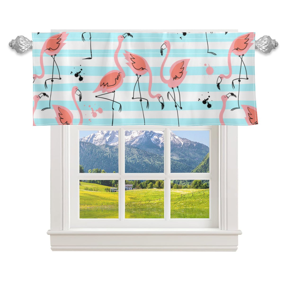 Retro Flamingo Kitchen Valance, Mid Century Modern Pink Blue Striped Window Curtain, Tropical 50s Kitsch Decor