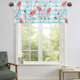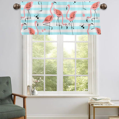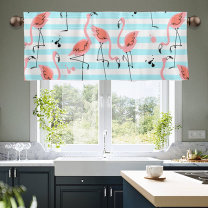Give your kitchen or bathroom a sassy splash of retro charm with this flamingo valance! Featuring flirty pink flamingos on vibrant aqua blue stripes, it’s pure 50s kitsch perfection. Made from soft, durable fabric with a rod pocket for easy hanging, this curtain is the ultimate accent to complete your mid-century tropical vibe. Perfect for kitchens, breakfast nooks, or even your modern tiki lounge!