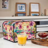 Turn your kitchen into a vibrant tropical paradise with this retro flamingo toaster cover! Inspired by mid-century modern flair, this cover features vivid pink flamingos, lush palms, and a dreamy sunset that screams 1950s vacation vibes. Made to fit most 4-slice toasters, it’s not just a visual delight but a practical must-have, keeping dust, scratches, and curious little critters away from your appliance. Who says kitchen accessories can’t be both fabulous and functional?