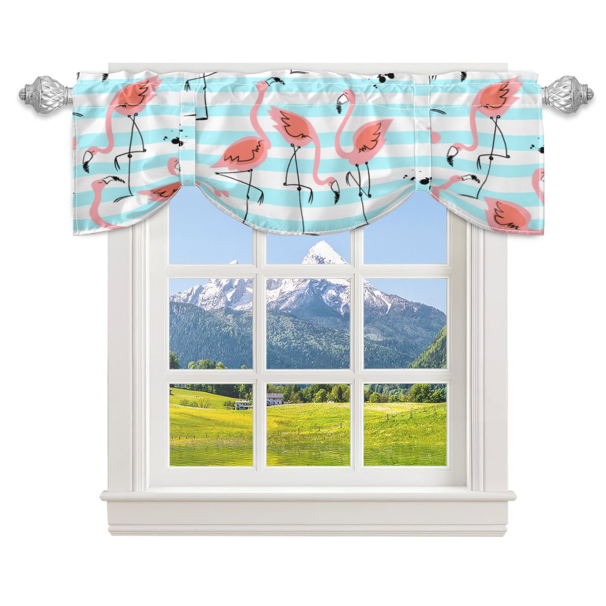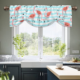 Give your kitchen a splash of retro tropical vibes with this flamingo tie-up valance! Featuring playful pink flamingos on cool teal stripes, this curtain channels mid-century modern flair with a twist of 50s fun. Perfect for kitchens, bathrooms, or any space that needs a groovy Palm Springs touch. Crafted with soft fabric and button ties for effortless styling, it’s both functional and fabulous!