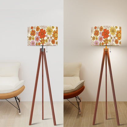 Get groovy with this Retro Floral Tripod Floor Lamp! Decked out with a burst of bold orange, yellow, and pink blossoms on a linen drum shade, this lamp screams mid-century modern magic. Its sleek wooden tripod base adds timeless flair, making it a statement piece for your living room, bedroom, or office. Add some sunny, retro charm to your space—because life’s too short for boring lighting!