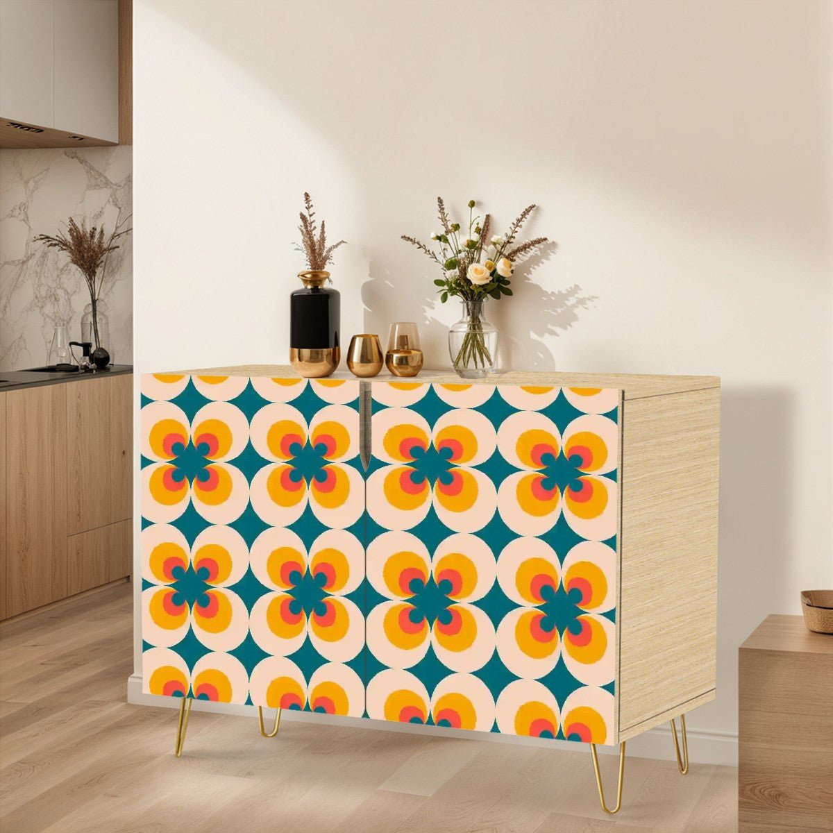 Retro Groovy 70s Mod Flower Power Storage Cabinet