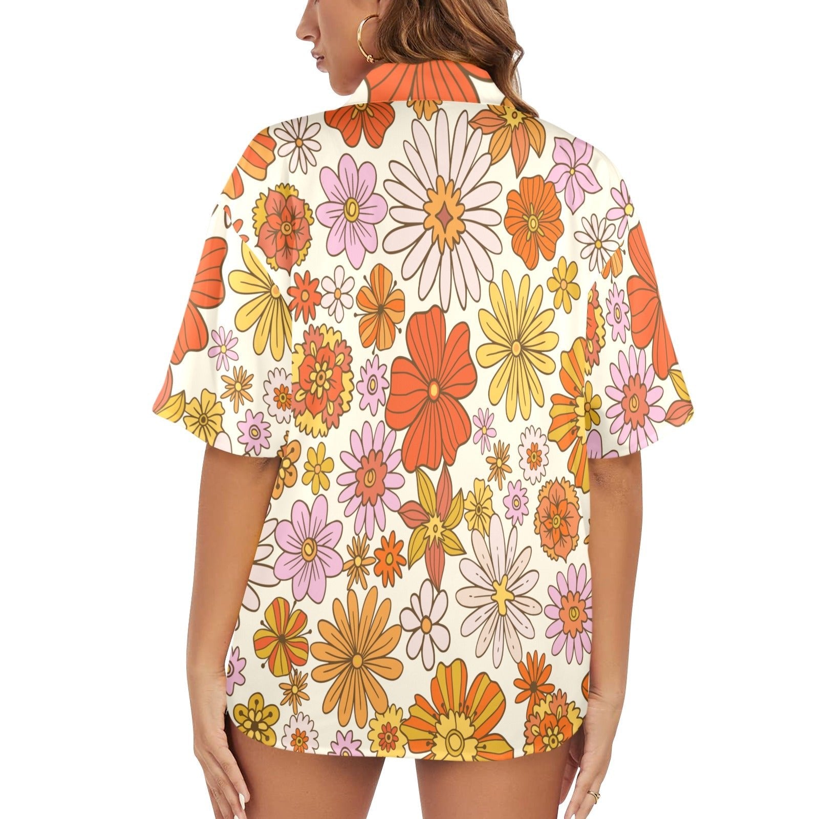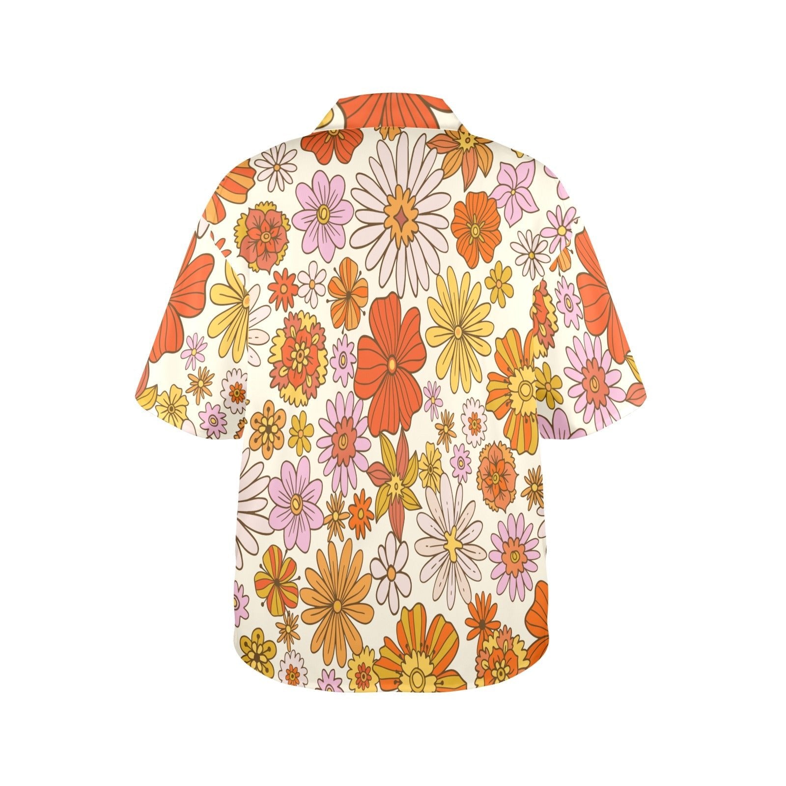 Get groovy with this retro-inspired Hawaiian shirt! Bursting with bold 60s florals in orange, yellow, and pink, this vintage-style button-up is all about summer vibes. Perfect for beach days, festivals, or just adding a little flower power to your wardrobe.