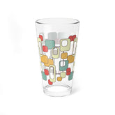 Retro Mod Geometric Pint Glass, Mid Century Modern Barware, 60s Color Block Cocktail Glass