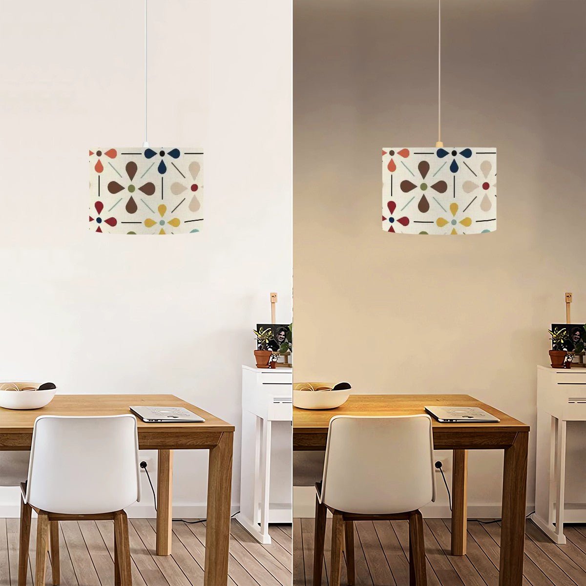 Scandinavian Floral Pendant Light, Mid Century Modern Ceiling Lamp, Retro Abstract Flower Drum Shade, MCM Hanging Accent Light