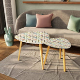 Introduce a touch of whimsy to your home decor with these Scandinavian Mid Century Modern nesting tables. Featuring retro Danish modern floral designs, they are perfect for adding a splash of color to any living room. These functional yet stylish tables are sure to make a statement!