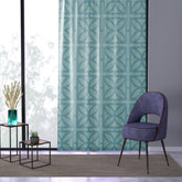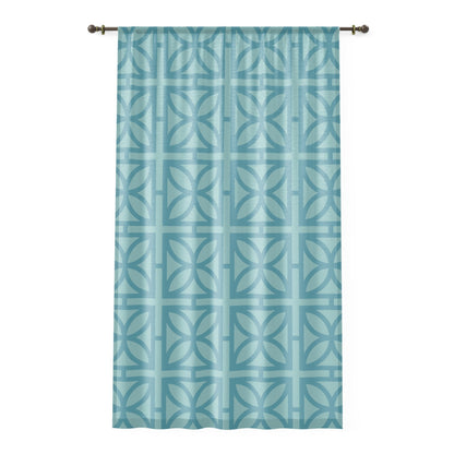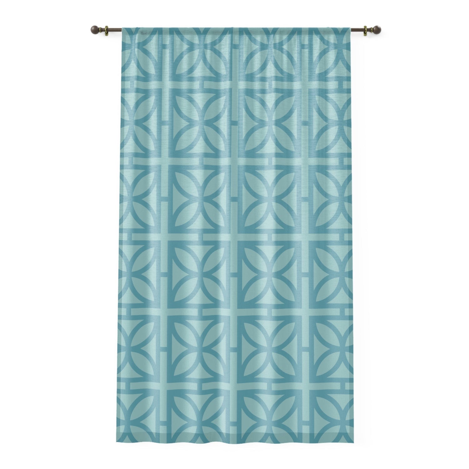 Mid Century Modern Aqua Breeze Block Sheer Window Curtain, Retro Architectural Grid Panel