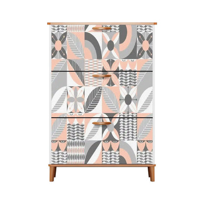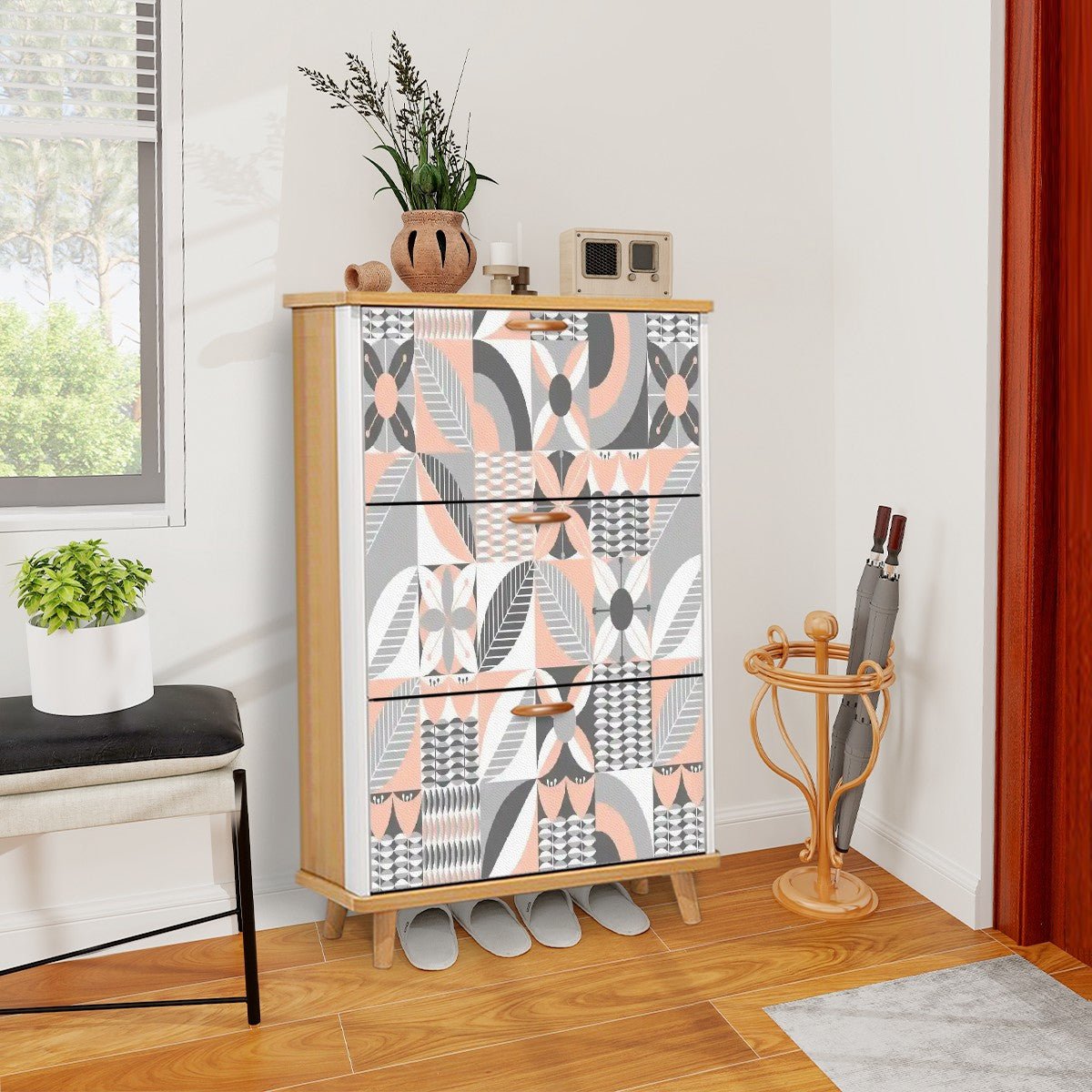 Meet your shoes' stylish new home. This Retro Scandinavian floral shoe cabinet blends geometric charm with Danish Modern sophistication. Practical storage gets a chic mid-century twist—keeping entryways effortlessly tidy and fabulously fashionable!