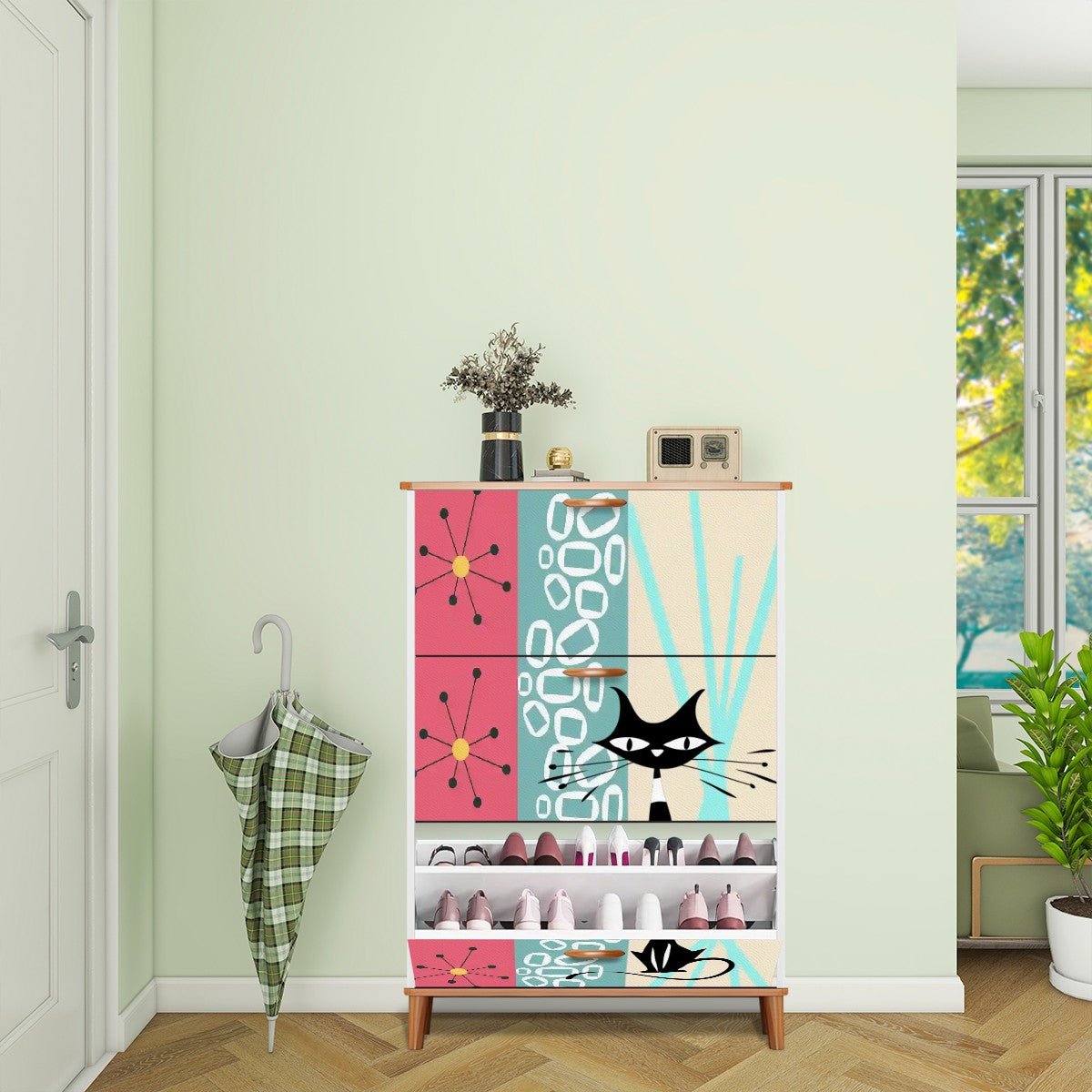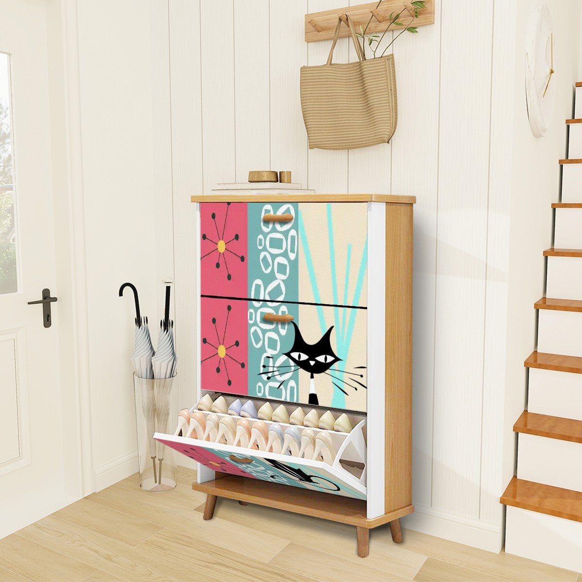 Atomic Cat Retro Starburst Shoe Organizer, Mid Century Modern Entryway Unit