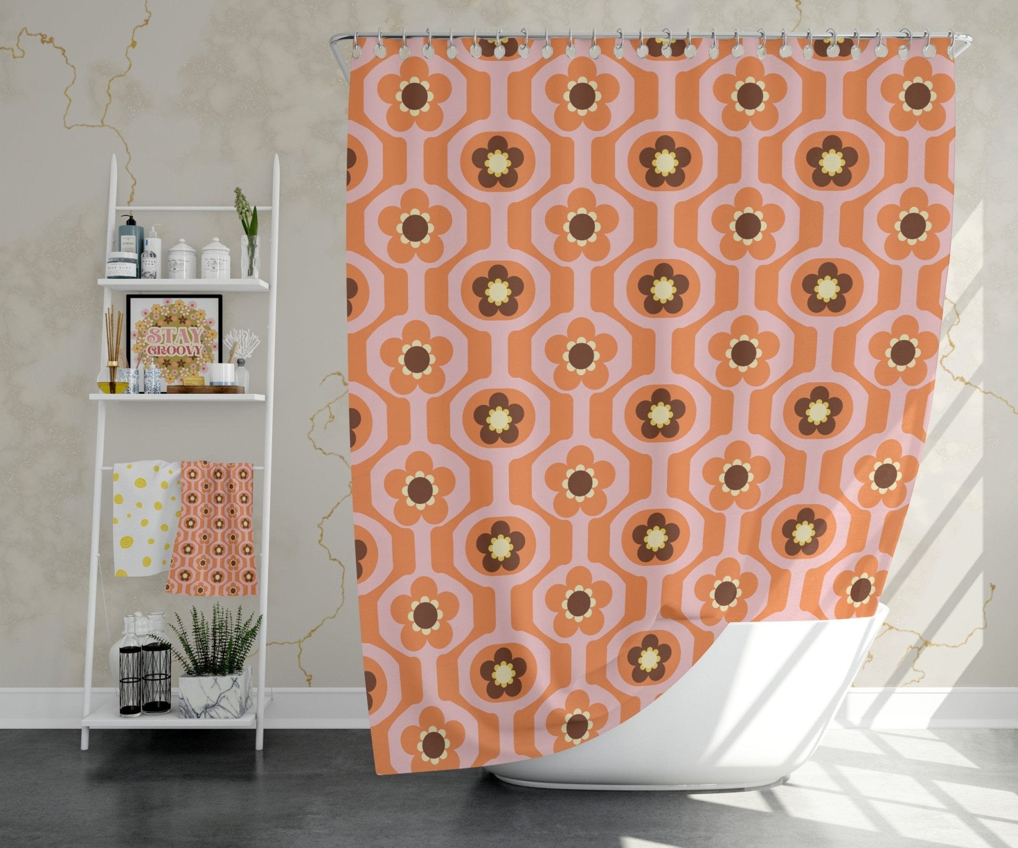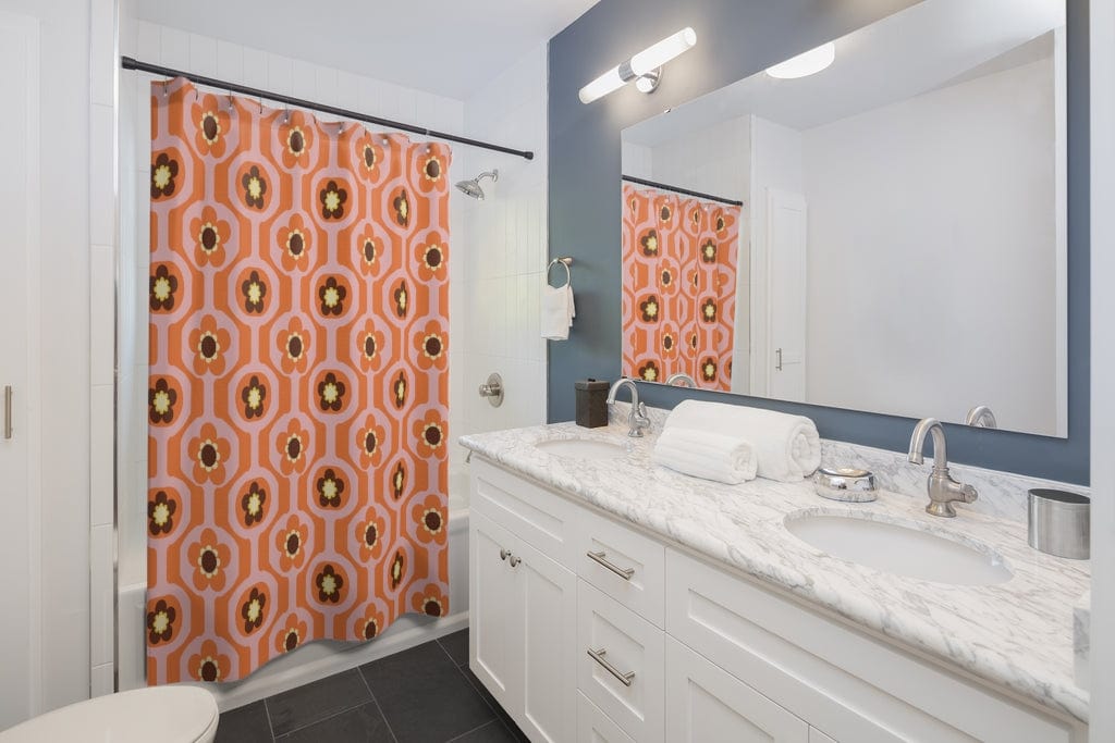 Get your Flower Power On with this absolutely gorgeous Shower Curtains in Retro Floral Mod Print. Made with durable polyester, it's definitely a must have to add a bit of the mid-century retro whimsy style to your bath experience. Conjuring up the nostalgic feeling of the 70s, 80s, and 90s era and adding both personality and bold freedom, they are sure to make you feel like royalty.