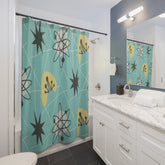 Decorate your bathroom like it's the 1950s! Our Shower Curtains in Mid Century Modern Retro 1950s Atomic Boomerang design will take you back in time and add tons of playful character to your bathroom. With their bold aqua blue, mustard yellow, and MCM starburst pattern, these curtains will give your bathroom a burst of vintage cool!