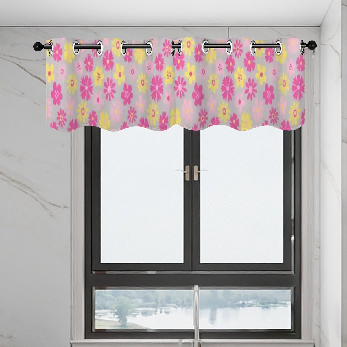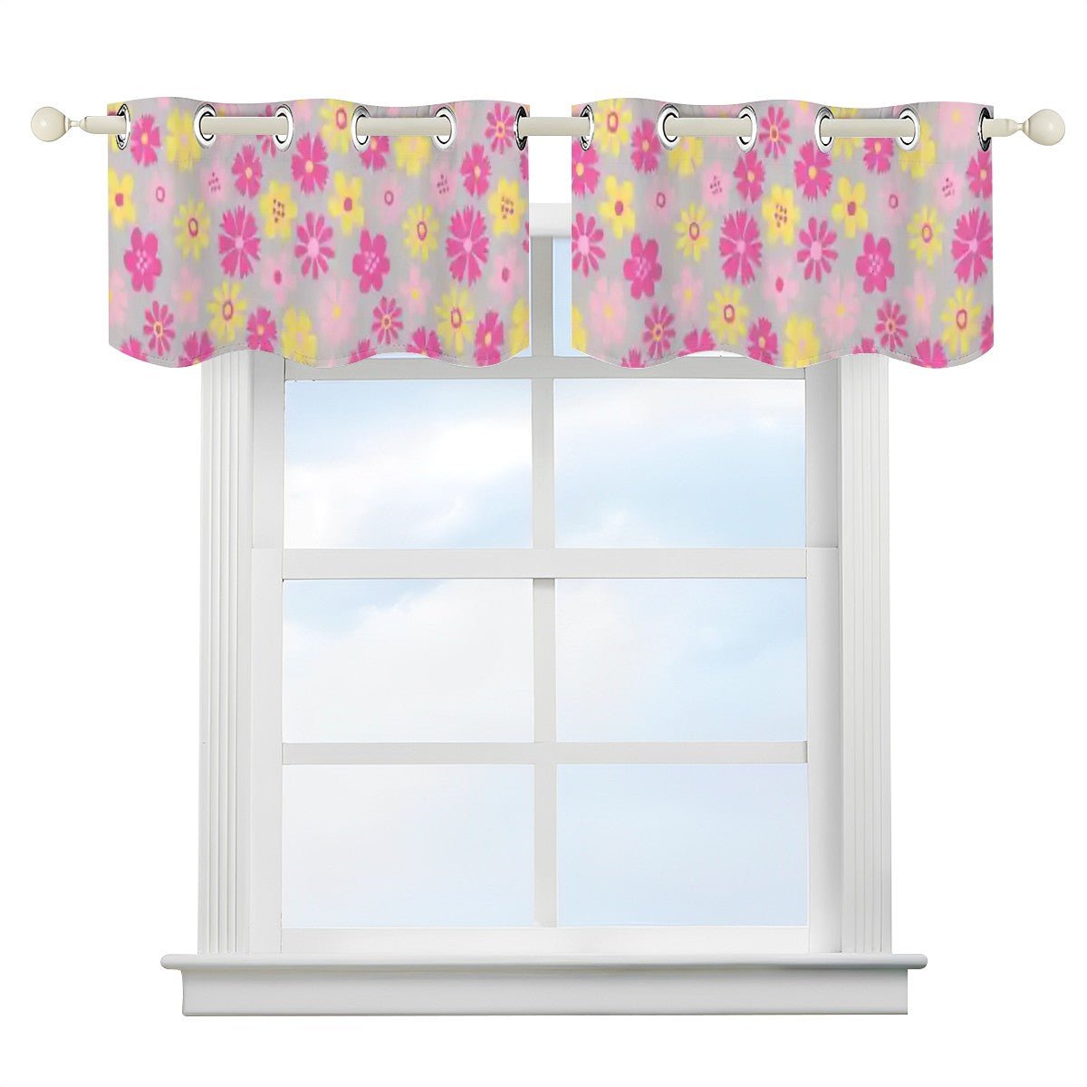 Retro Daisy Window Valance, Mid Century Modern Pink and Yellow Floral Kitchen Curtain, 60s Groovy Grommet Short Drapes