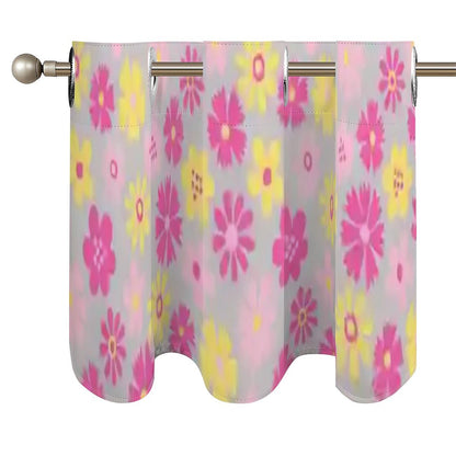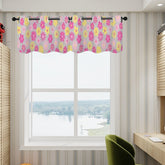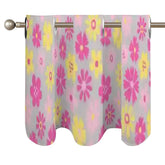 Add a playful mid-century modern touch with this retro floral window valance, featuring pink and yellow daisies on a soft pastel backdrop. A perfect way to bring vintage mod charm to kitchens, bathrooms, or any window needing a funky retro accent. Designed with grommet-style rings for easy hanging, this valance is both stylish and practical for a mod-inspired space.