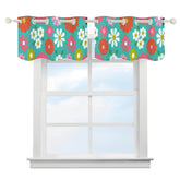 Retro Daisy Floral Window Valance, Mid Century Modern Mod Flower Kitchen Curtain, 60s Groovy Grommet Short Drapes